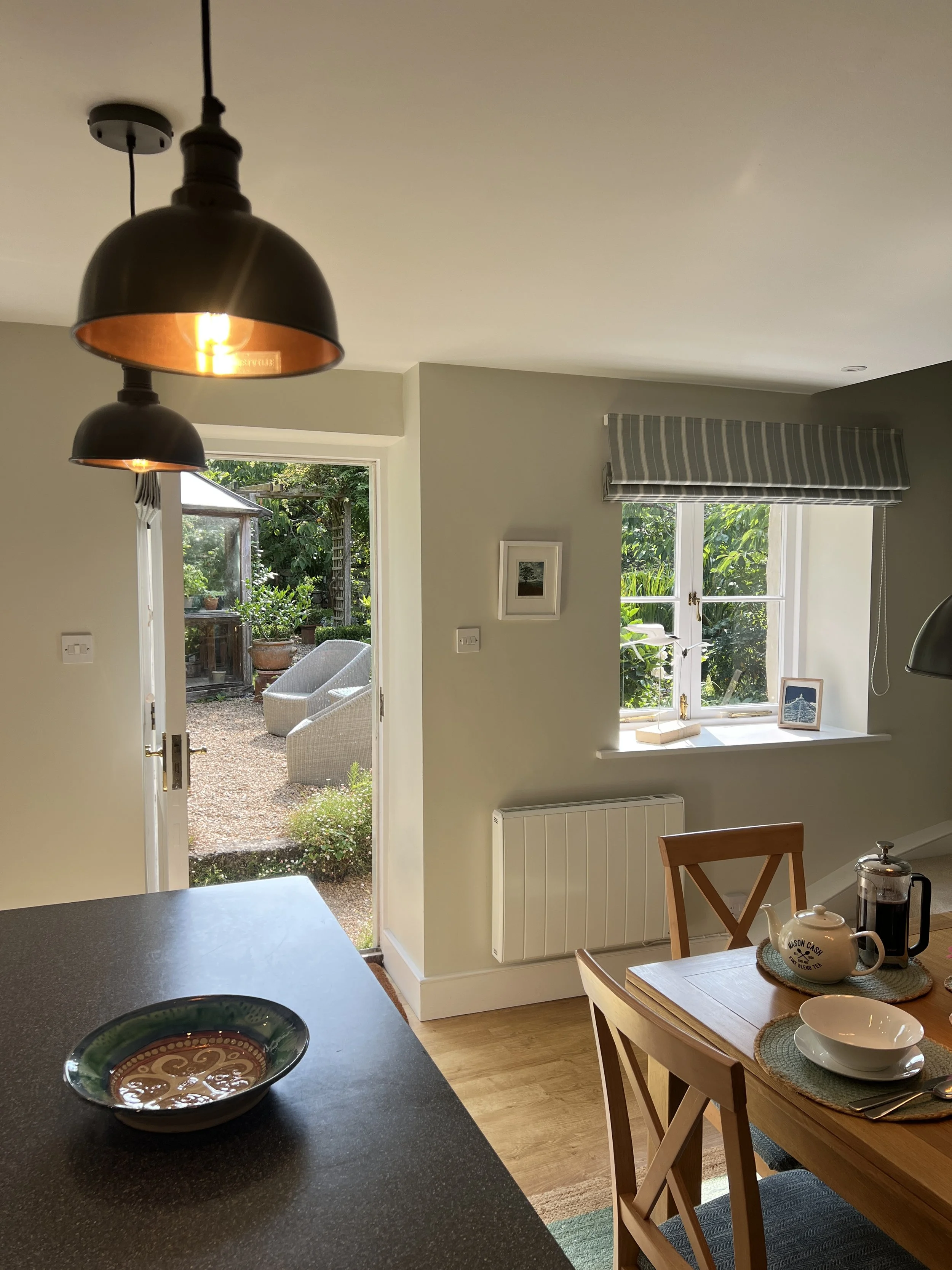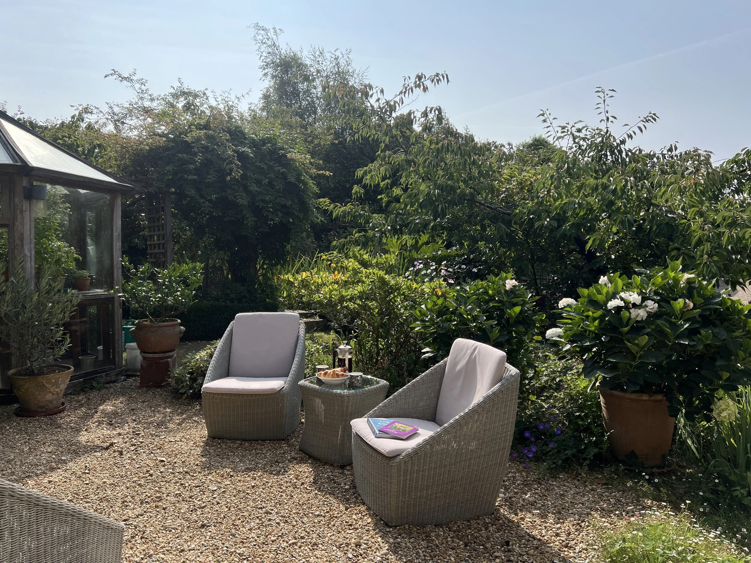 There is a south-facing sun terrace outside the cottage with seating overlooking our landscaped wildlife garden and pond.