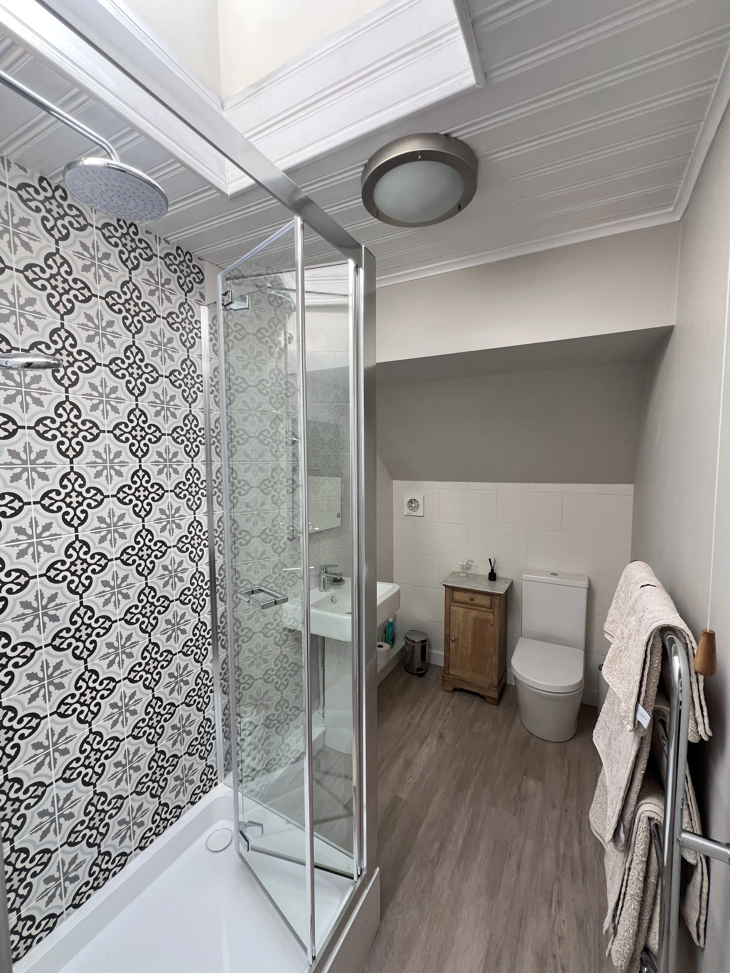 Upstairs are two light and comfortable double bedrooms (one large double, one standard double) with ensuite shower rooms.